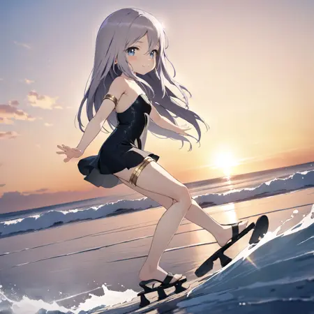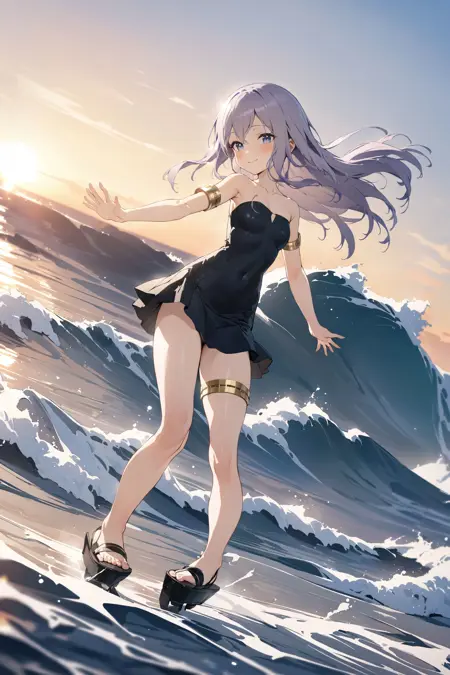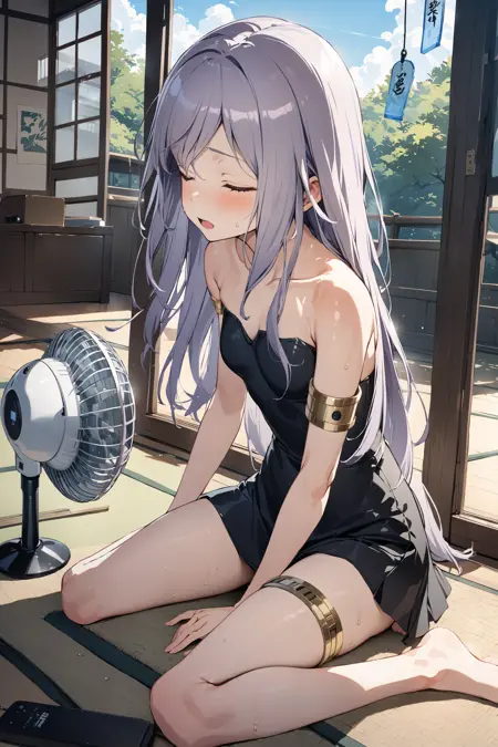 内搭: 军帽,黑色连衣裙,短裙,无肩带连衣裙,露肩,露腿,赤脚,臂环,大腿环,