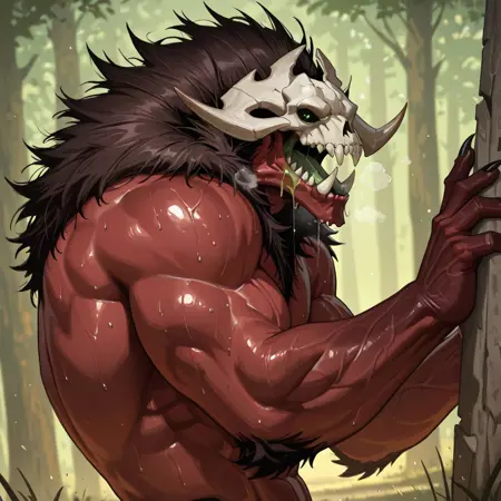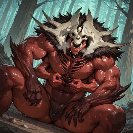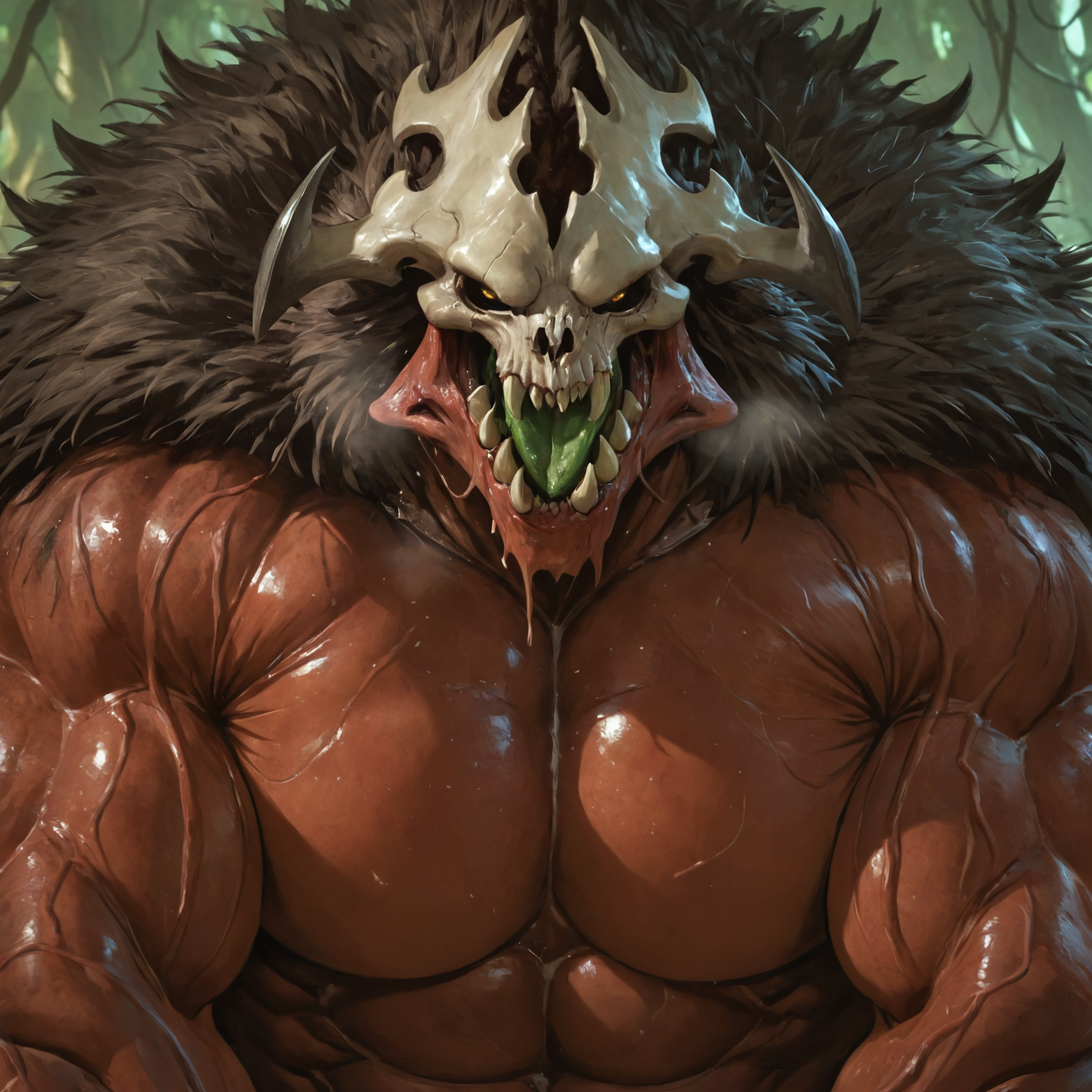 トレーニング済みタグ+オプション=(ファンタジー生物、肋骨が見える、複数の腕、とげのあるツノ、鋭い牙)