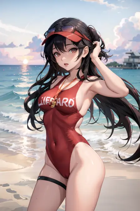 This LoRA is for SD 1.5. The red one-piece lifeguard swimsuit is a beacon of safety and confidence on the water's edge. Its bold hue commands attention, while its sleek design allows for effortless movement through the waves. The suit's form-fitting silhouette embodies the lifeguard's readiness to spring into action, providing a reassuring presence to beachgoers. With the iconic lifeguard emblem proudly displayed on the chest, this swimsuit is more than just attire—it's a symbol of protection and vigilance, representing the commitment to ensuring a safe and enjoyable beach experience for all.