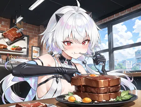 Epic Sevenのラビ。彼女の髪の色は時々乱れてしまうため、対策としてプロンプトに青い髪を追加するのが最良です。