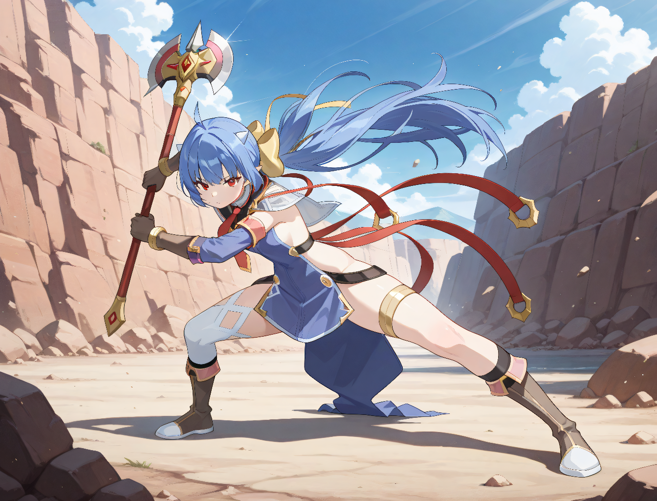 来自《Epic Seven》的Ravi。她的发色有时会显得凌乱,最好的预防方法是在提示中加入蓝色头发。