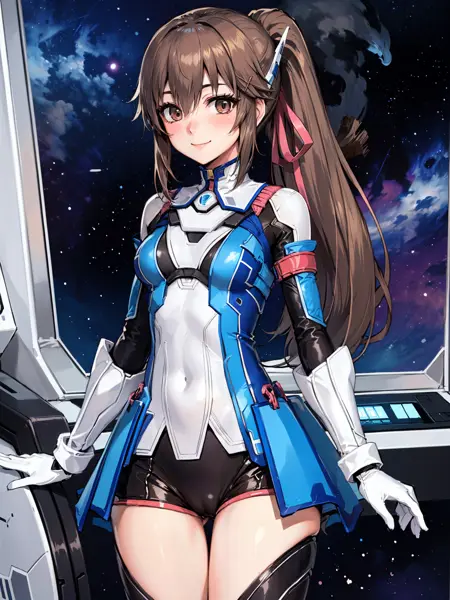 reimisaionji, brown eyes, brown hair, long hair, ponytail, sidelocks, hair between eyes, ribbon, hair ribbon, hair ornament
