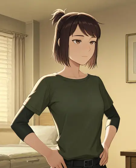 - 年轻:M4dd13K1m, 1girl, 短发, 棕色头发, 棕色眼睛, 短马尾
