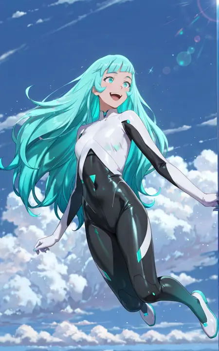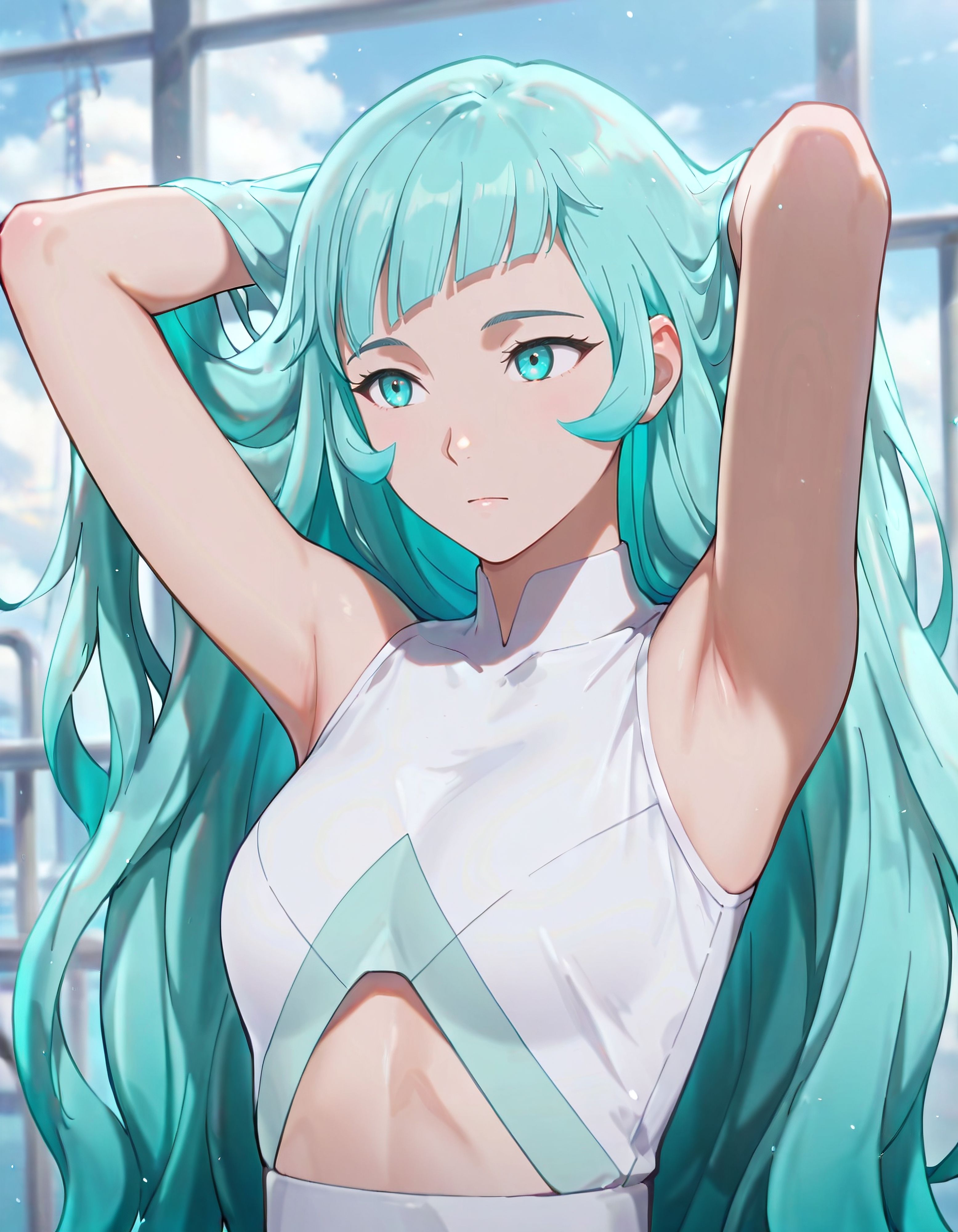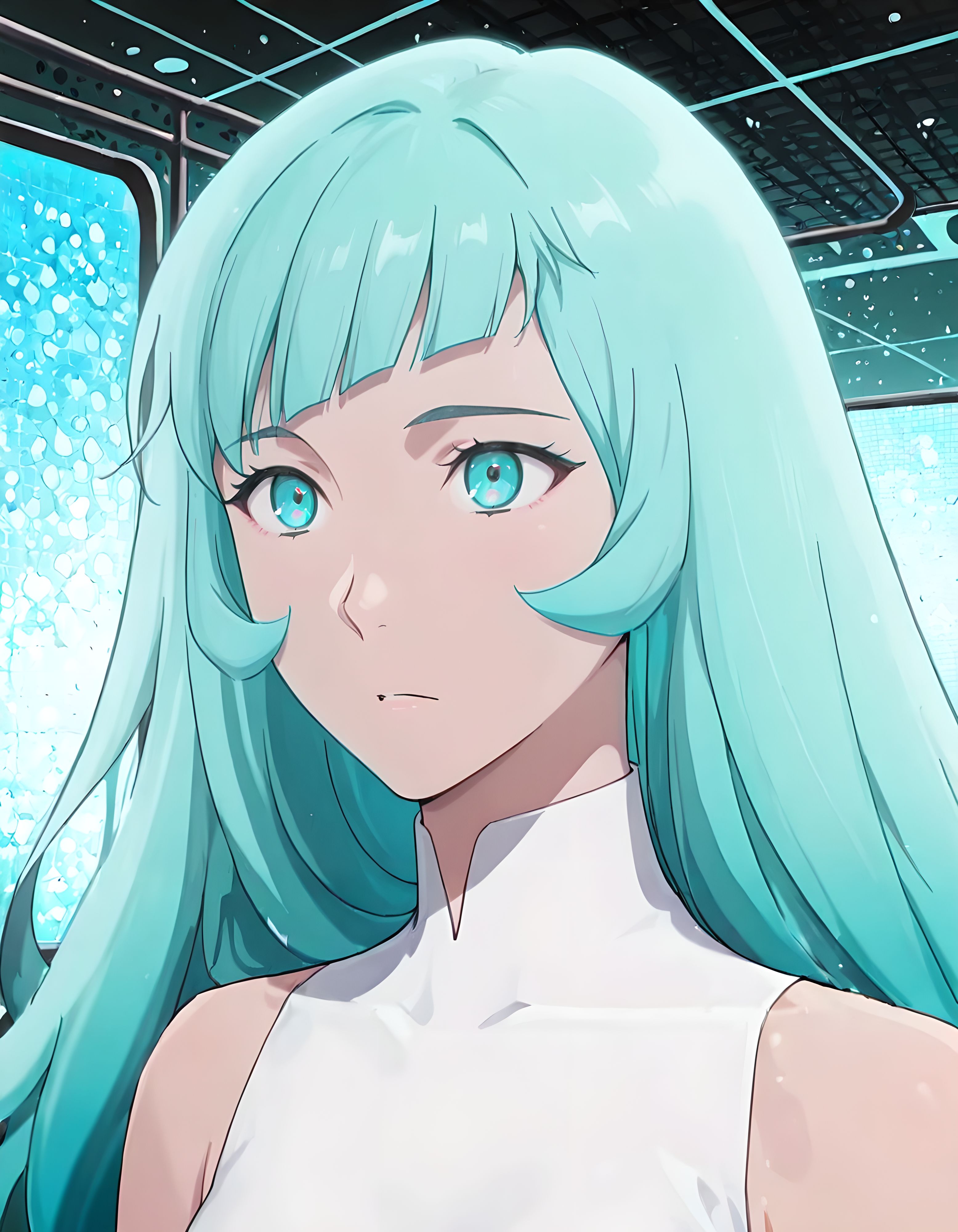 M1st, 1girl, aqua eyes, aqua hair, long hair, bangs