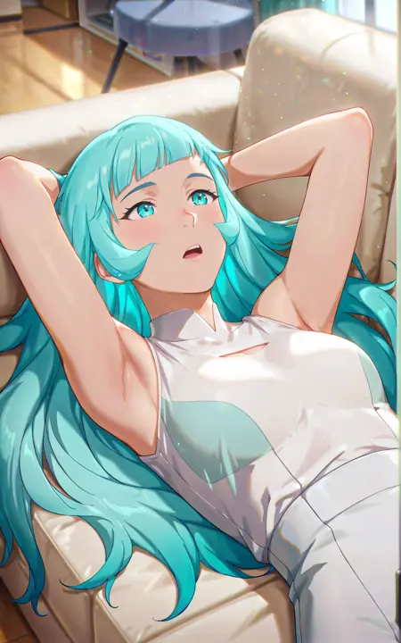 基础提示:M1st, 1girl, 水色眼睛, 水色头发, 长发, 刘海