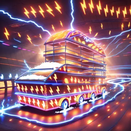 Version 2 of the Buzz Enhancer made from 90% new higher quality images. It adds stylized lightning bolt symbols (orange and blue), electric elements, fragments, sparks and energy, and is trained on the word BUZZ in orange, yellow and blue.