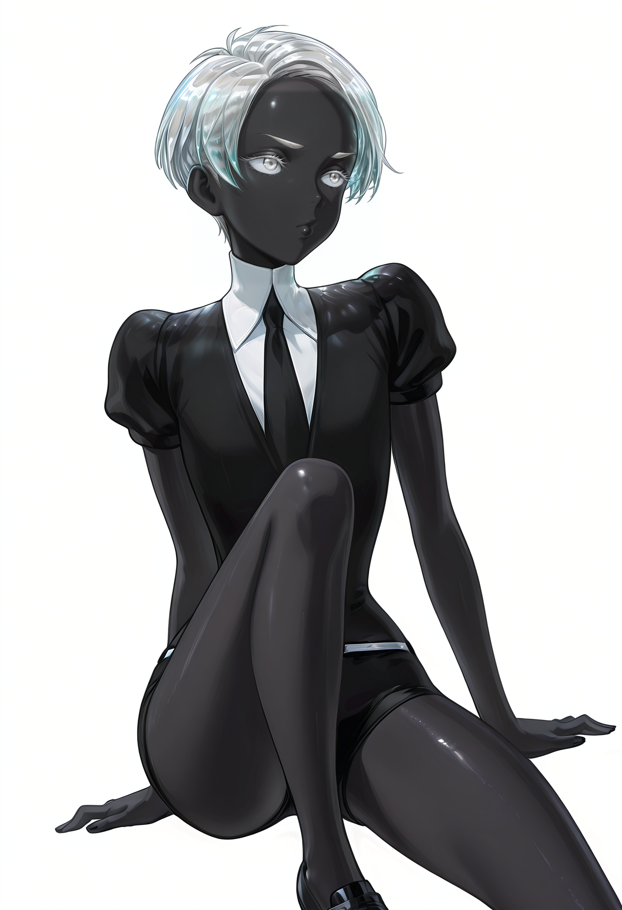 Cairngorm/Cnn, 1girl, colored eyelashes, white hair, short hair, white eyes, black skin, colored skin,