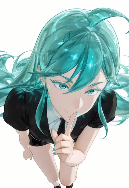 Alexandrite/Cnn, 1girl, colored eyelashes, aqua hair, aqua eyes, long hair, ahoge,
