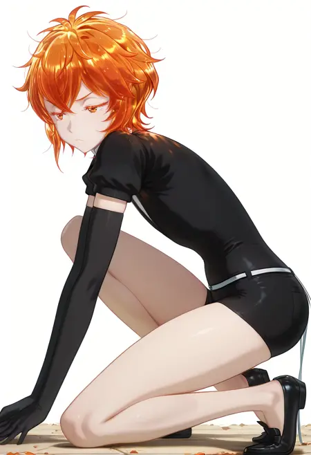 Zircon/Cnn, 1girl, colored eyelashes, orange hair, orange eyes, short hair, messy hair,