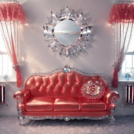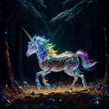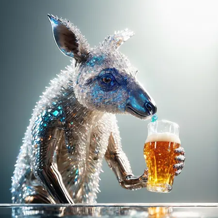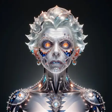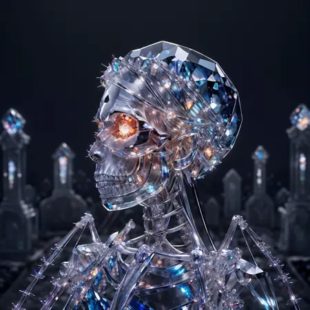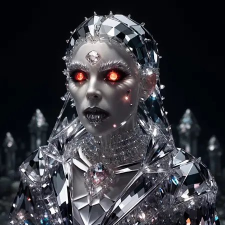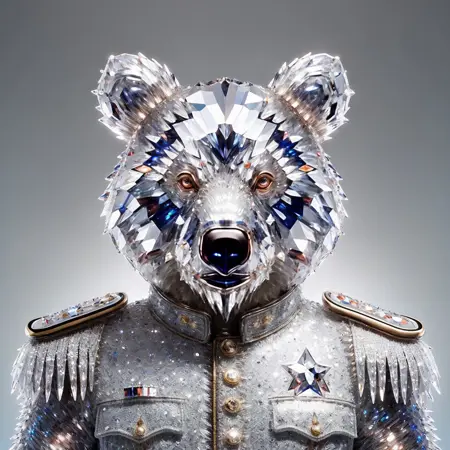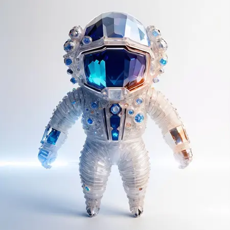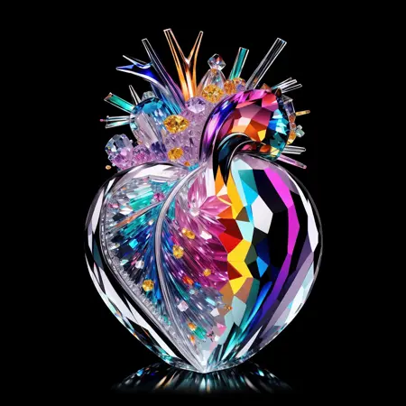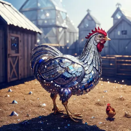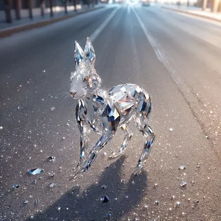 短いプロンプトでは、対象物がクリスタルバージョンになります。効果は、大きな結晶面と小さなきらびやかな結晶の混合となります。