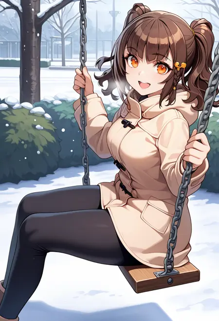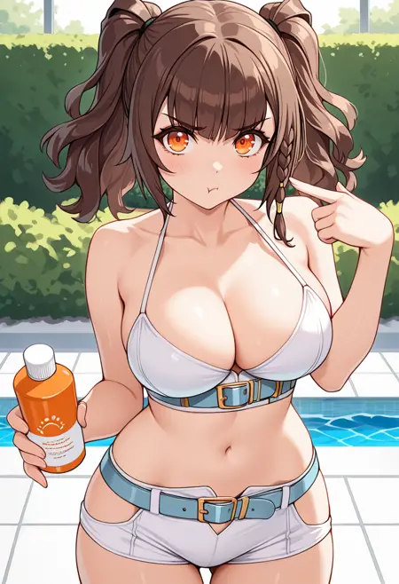 svraphael, 1girl, brown hair, orange eyes, twintails, braided sidelock