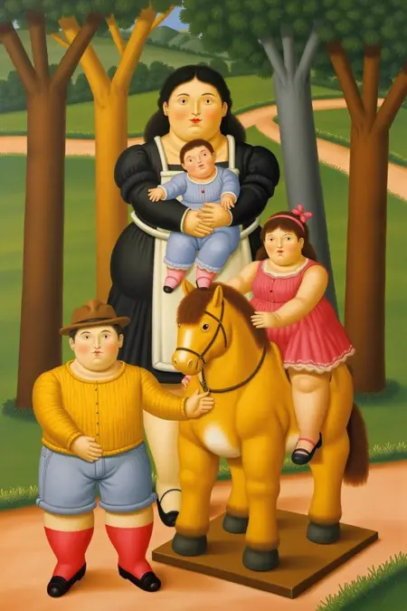 콜롬비아의 구상화가이자 조각가 페르난도 보테로 안굴로(1932년 4월 19일 – 2023년 9월 15일)의 그림 33점으로 학습되었습니다. 그의 작품을 보려면 다음 링크를 방문하세요: