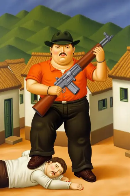 - 일부 작품은 정치적 무게를 지니지만, 보테로의 많은 회화는 풍자적 요소를 담고 있어 전통 예술, 종교적 인물, 사회 엘리트를 조롱합니다.
