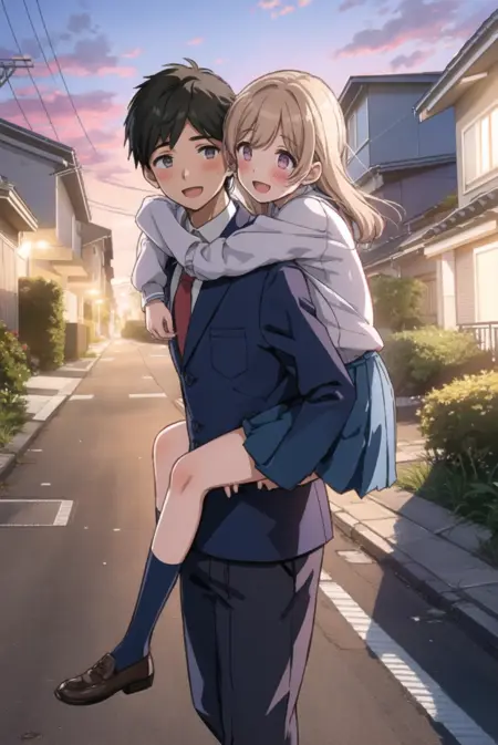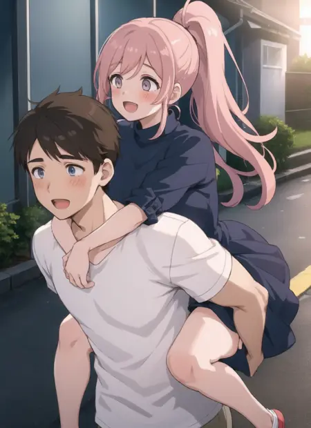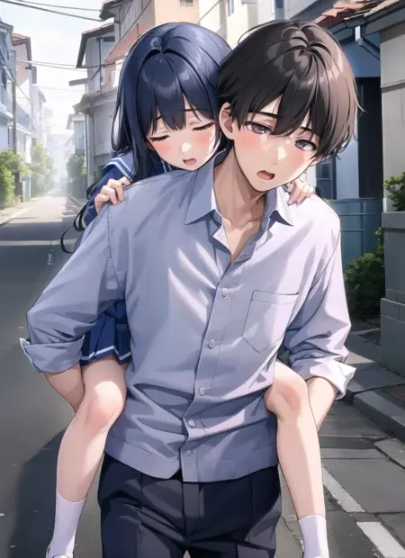 男の子と女の子を生成する際、LoRAは子供が背負われている様子を生成しやすいですが、大人を生成することもあります。