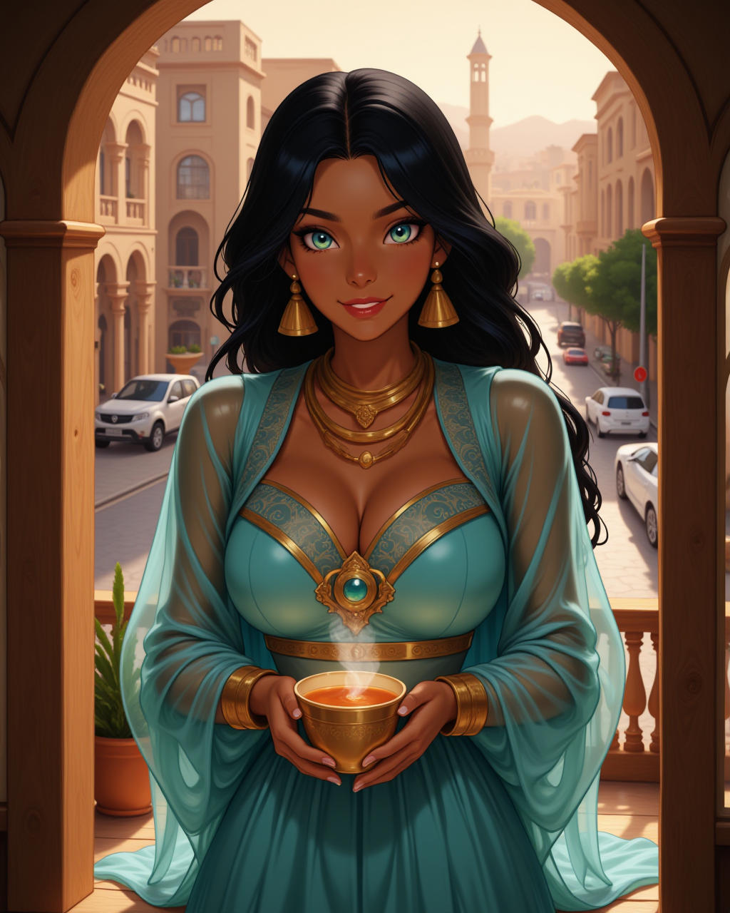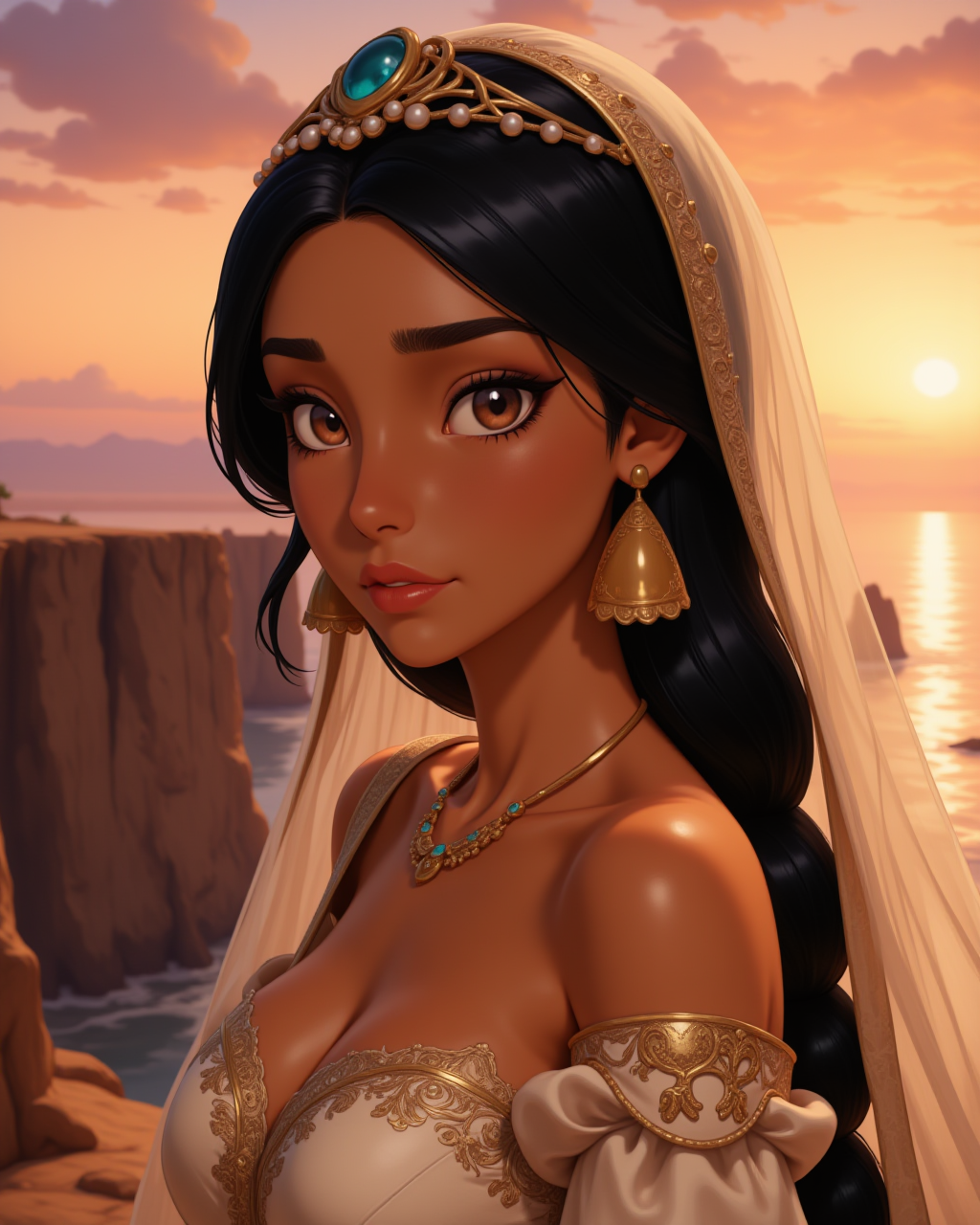 알라딘에 등장하는 자스민의 이미지를 생성합니다.