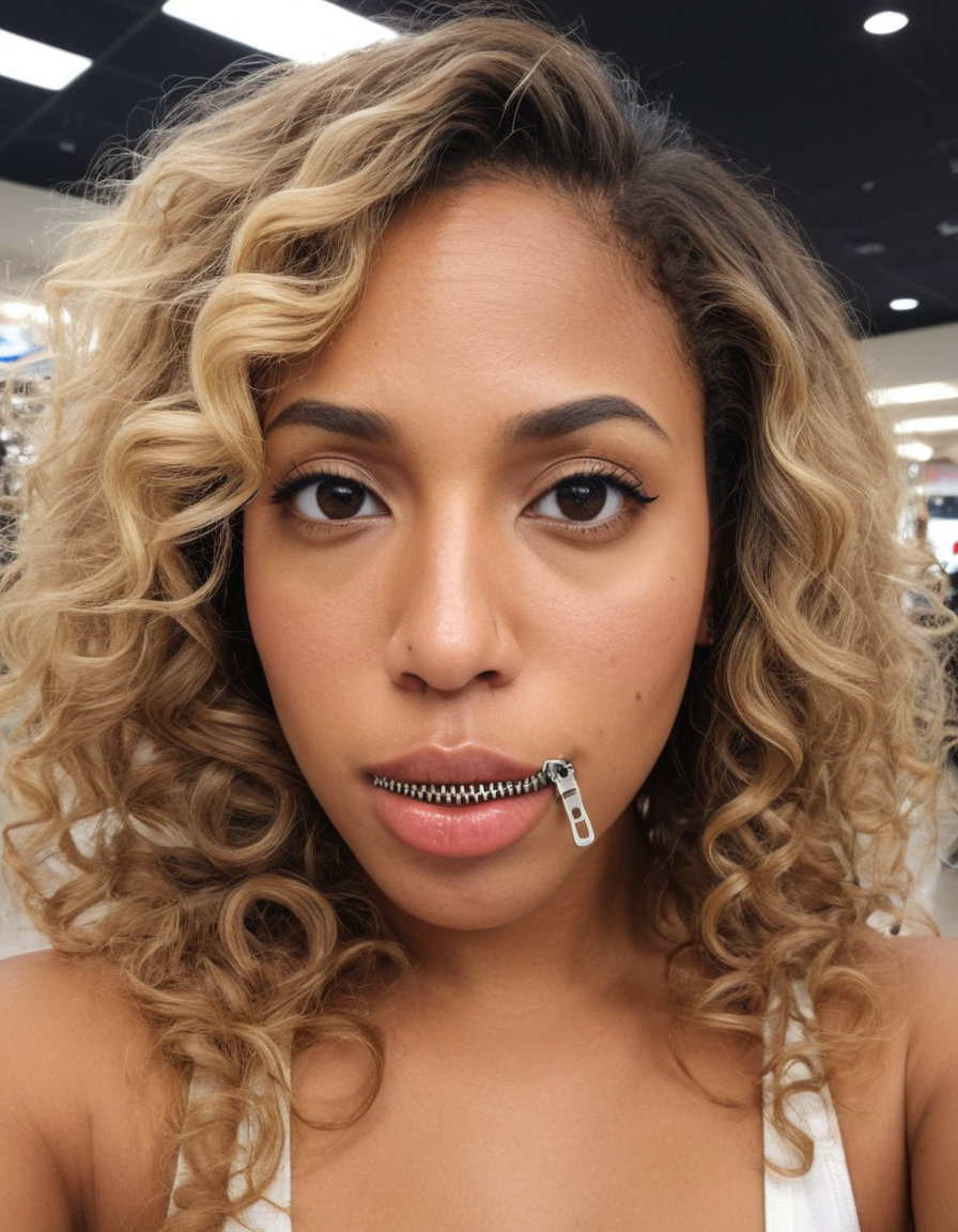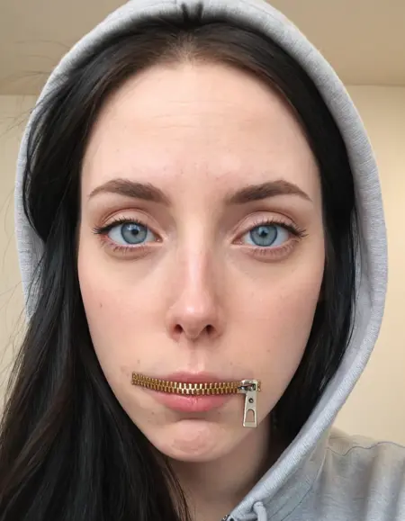 ここに少し軽い、バカバカしいLoRAを紹介します:女性の唇にジッパーが閉じられているLoRAです。