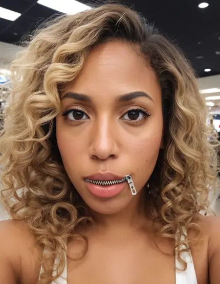 这里有一个轻松搞笑的LoRA:用于描绘女性拉链拉上嘴唇的图像。