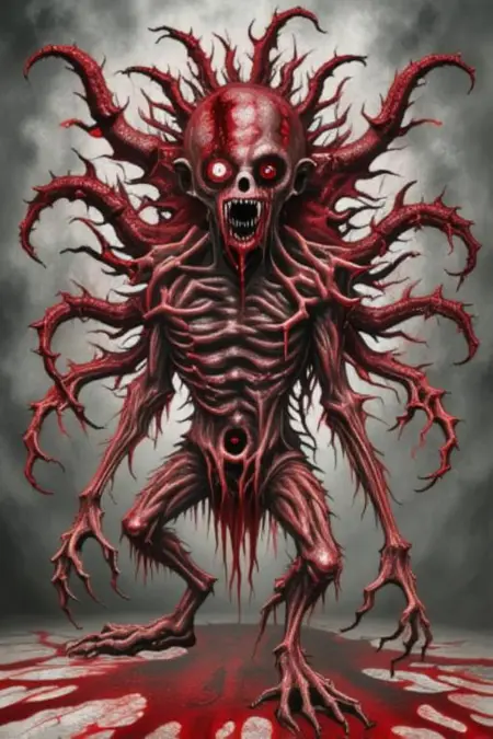 Prompt example: bloody monster, no human, horror, kull, extra arms, extra legs, eyes, splitting skin