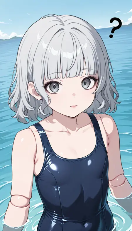 外見: LivieNikki、グレーの髪、まっすぐな前髪、濃いグレーの目、波打つ髪、ミディアムヘア、平らな胸、ドール関節、唇