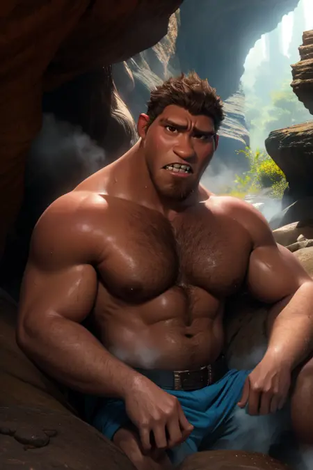 - 筋肉質で、体毛が濃い(腕や胸など)、ひげまたはあごひげ