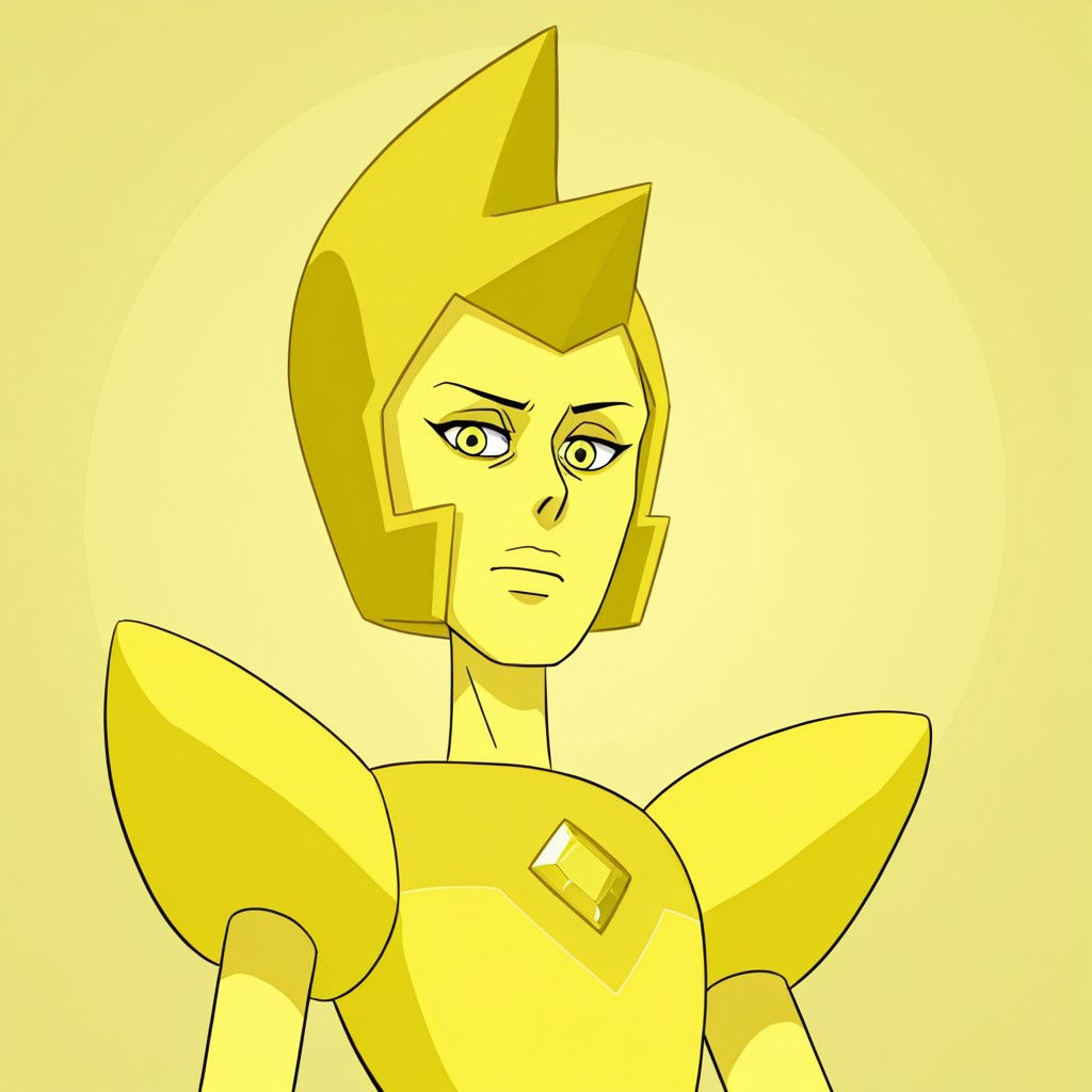 Yellow(character), yellow body, female, helmet, yellow eyes, HomeWorld_armour, Gem on chest,