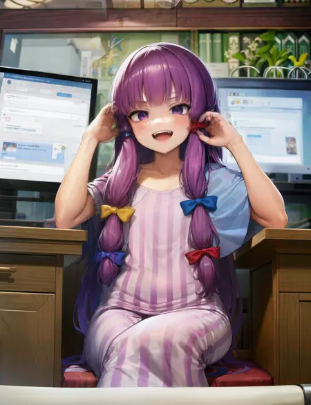 TIS: patchouli knowledge/jagged teeth/jitome or sanpaku (eyes)