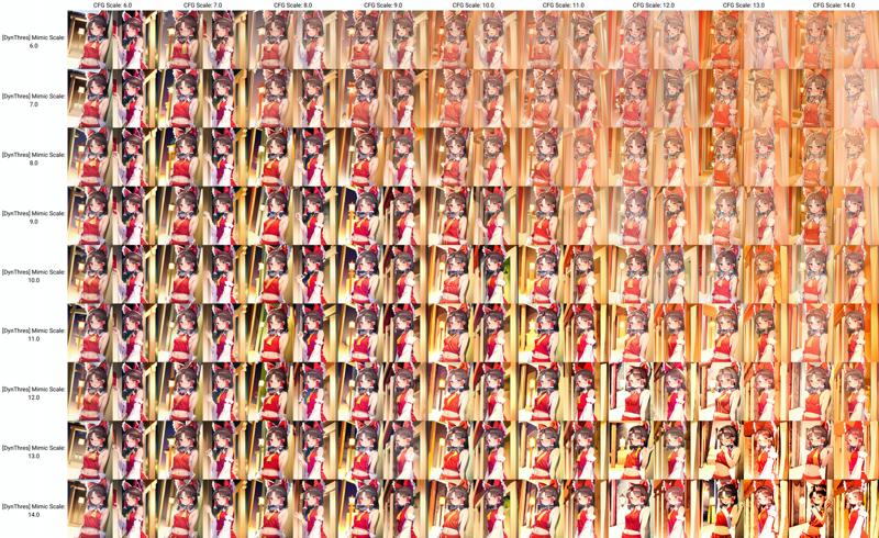 The matrix with Dynamic Thresholding (CFG Scale Fix) enabled.