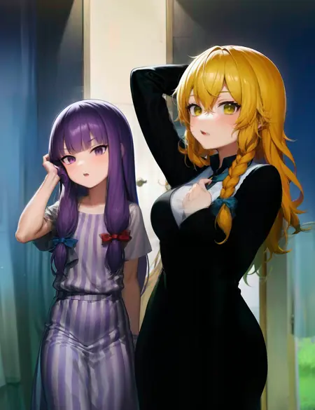 Generating 2girls images, recommended to use the Latent Couple extension or other extension for split screens.