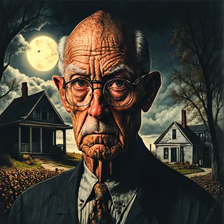 세밀한 농촌 풍경, 향수어린 미국적 요소, 그리고 불길한 초자연적 요소를 결합합니다. 그랜트 우드, 토머스 해트 벤턴, H.P. 러브크래프트로부터 영감을 받았습니다.