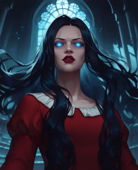 Laura,蓝眼睛,黑色长发,口红,