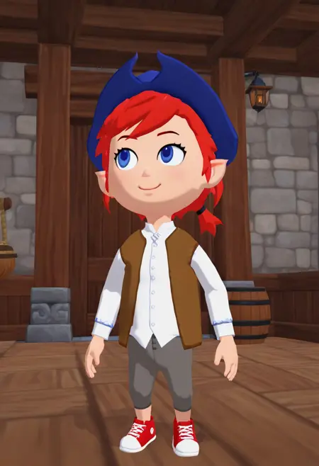 기본: Pep_pum, 빨간 머리, 뾰족한 머리, 낮은 포니테일, 짧은 포니테일, 파란 눈