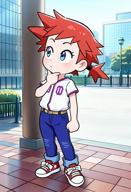 부정적 키워드: 바지를 걷어올린 상태(일부 체크포인트/스타일이 이 복장의 바지에 잘못 추가됨)