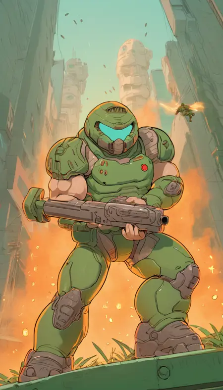 Egoシューターvideogame『Doom』のDoomguy。SDXL 1.0用LoRA。