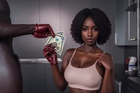 lora:mdmcshsxccFT15:{0.6|0.7|0.8|0.9|1} {mdmcshsxccft, }{1girl, }{realistic, }{holding, |}{looking at viewer, ||}{pov, ||}{money, ||}{solo focus, ||}{1boy, |||}{holding money, ||||}{pov hands, ||||}{navel, ||||}{banknote, |||||}{prostitution, |||||}{dark skin, |||||}{midriff, ||||||}{sitting, ||||||}{hetero, ||||||}{solo, ||||||}{penis, ||||||}{erection, ||||||}{standing, |||||||}{yellow gloves, |||||||}{open mouth, |||||||}{head tilt, |||||||}{paper, |||||||}{dark-skinned male, |||||||}{pubic hair, |||||||}{kneeling, |||||||}{refrigerator, |||||||}{pink pants, |||||||}{card, |||||||}{blurry foreground, |||||||}{rubber gloves, |||||||}{dark-skinned female, |||||||}{holding card, |||||||}{finger to mouth, |||||||}{pink gloves, |||||||}{depth of field, |||||||}{fat, |||||||}{male pubic hair, |||||||}{condom, |||||||}{pussy, |||||||}{forehead, |||||||}{holding paper, |||||||}{completely nude, |||||||}{orange gloves, |||||||}{bra strap, |||||||}{faucet, |||||||}{photo (object), |||||||}{parted lips, |||||||}{interracial, |||||||}{trash can, |||||||}{globe, |||||||}{cleaning, |||||||}{window blinds, |||||||}{photo inset, |||||||}{large penis, |||||||}{swivel chair, |||||||}{veins, |||||||}{twin braids, |||||||}{condom wrapper, |||||||}