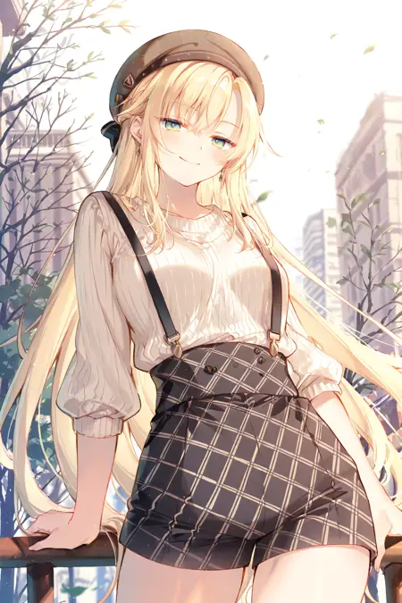 ReginaOuting, 贝雷帽, 丝带, 针织衫, 条纹衬衫, 竖条纹, 白色上衣, 背带, 黑色短裤, 格子短裤, 背带短裤, 红色袜子, 运动鞋,