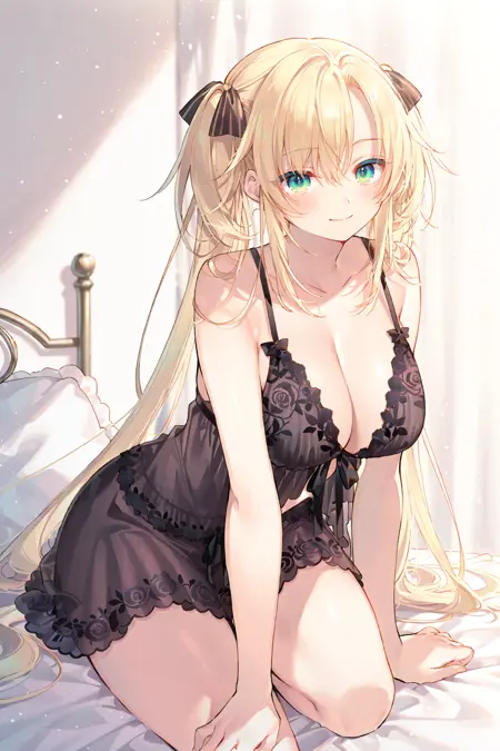1girl, reginam, 绿色眼睛, 金色头发, 双马尾,