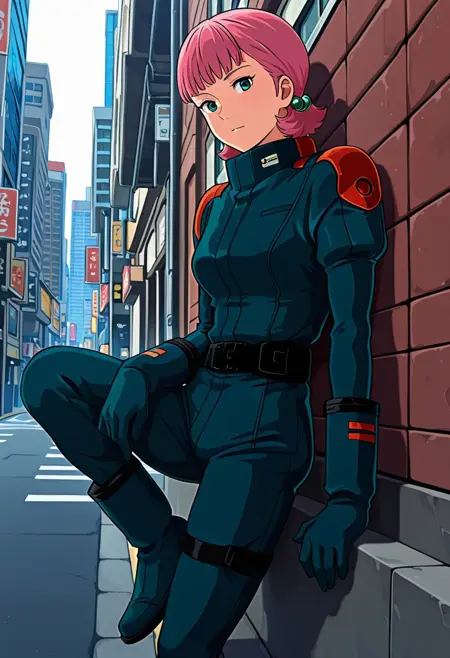 zabiarov, 1 female,pink hair , short hair,ear accessory, green eyes