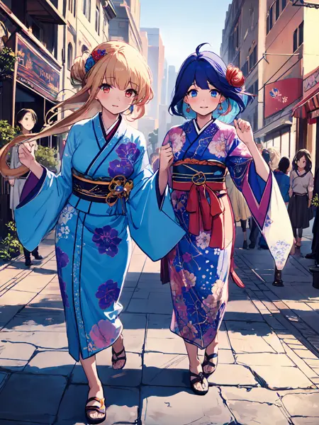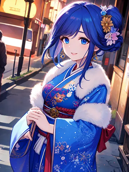 (색상) 일본 복장(기모노), 머리꽃, 털 장식, 띠, 오비, (타비, 샌들);