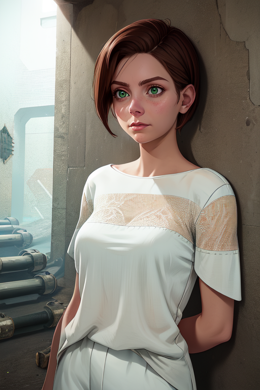 beta, 녹색 눈, 갈색 머리 또는 주황색 머리, 단발