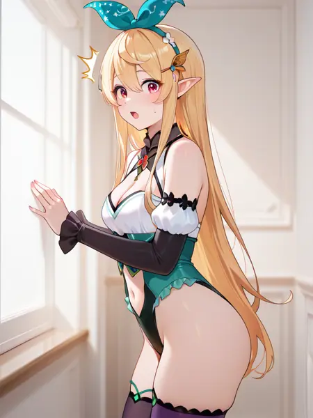 옷차림: 레오파드, 배꼽, 가슴 선, 허벅지 긴 양말, 분리형 소매