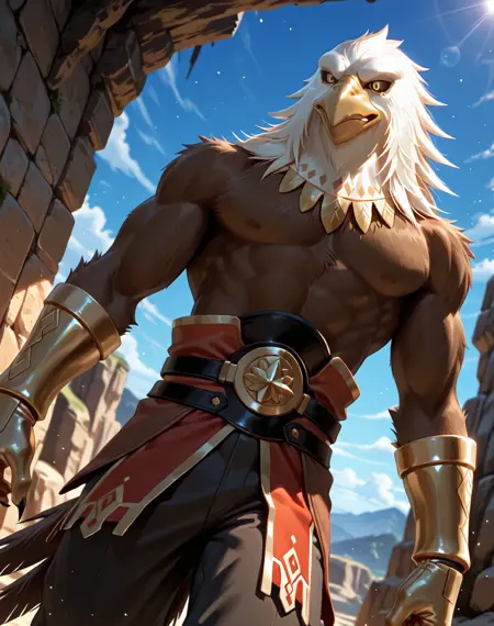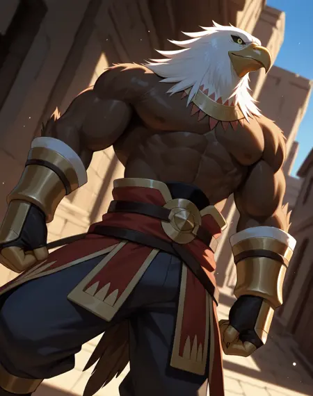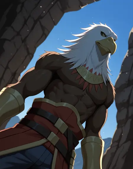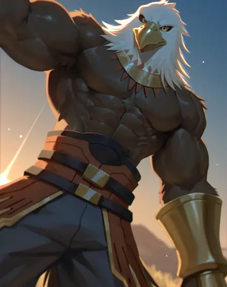 此LoRA的提示词为(Eagle_Master, Sands of Destruction, 肌肉发达, 鹰)。有时需要添加提示词(black sclera),因为某些检查点不会显示角色眼睛的黑色眼白。