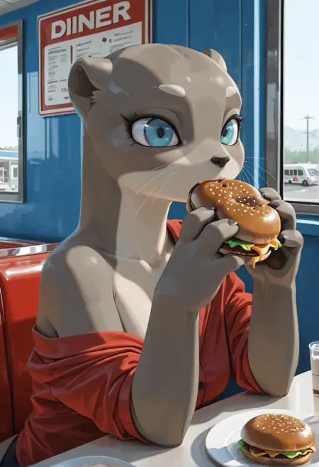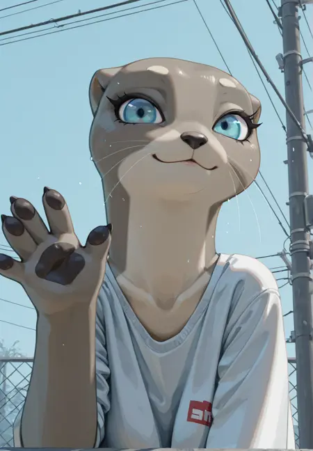 1girl, ms_ota, otter girl, furry female, solo, blue eyes, tail