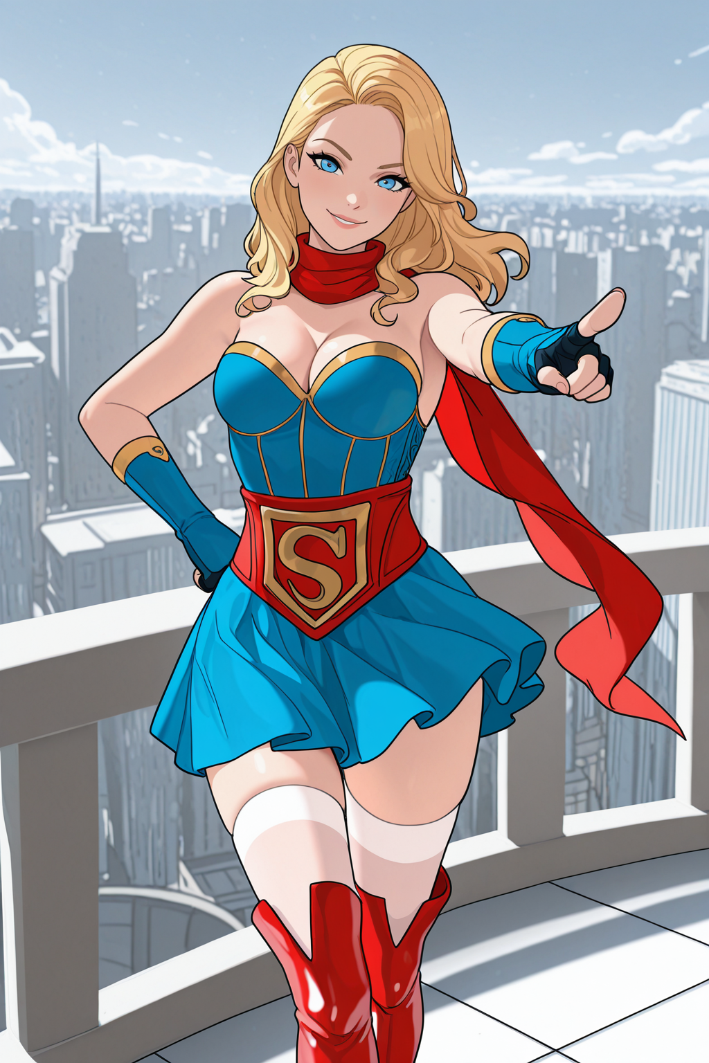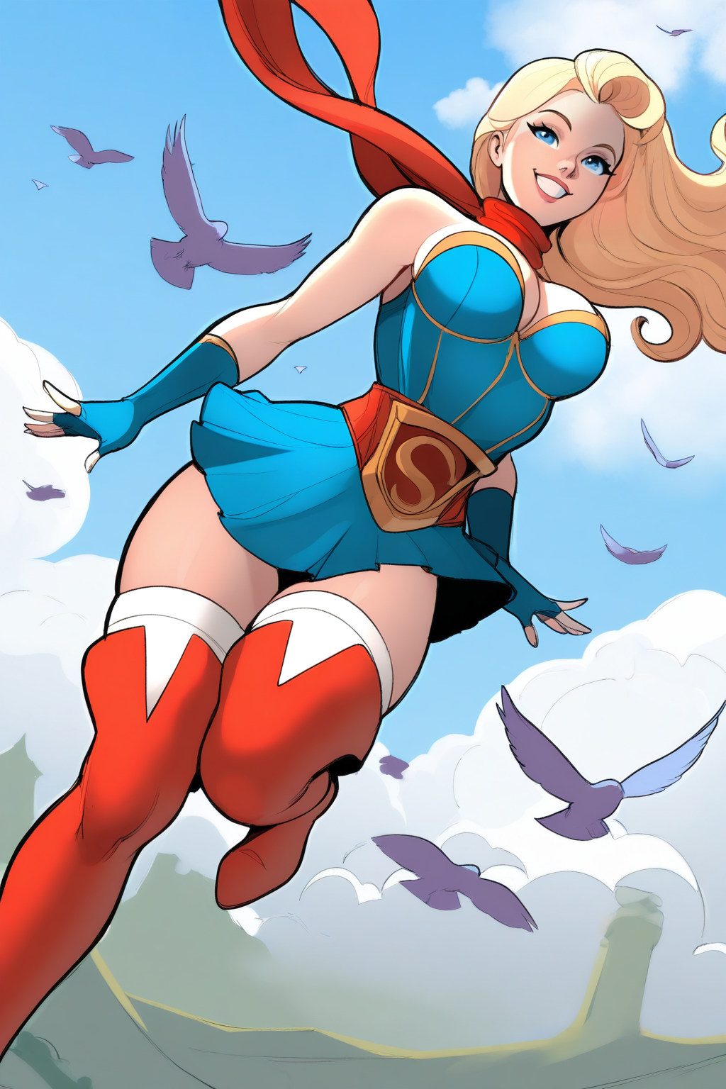 DC Bombshells 만화 시리즈의 수퍼걸. Bombshells는 1940년대를 배경으로 한다.