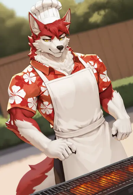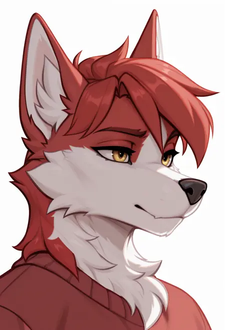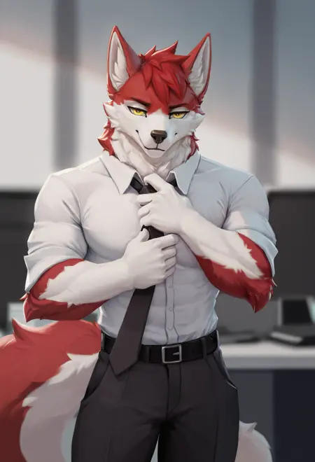 • 캐릭터 태그: 푸리 남성, 동물 귀, 늑대 소년, 흰 털, 늑대 꼬리, 이색 털, 빨간 털, 빨간 머리, 단발, 노란 눈, 근육질 남성, 복근, 큰 유방근
