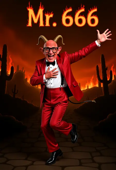트리거: "6FDM man"을 입력하면 안경, 이중 색 신발, 검정 정장, 빨간 넥타이와 빨간 스스펜더가 포함된 원래의 Mr. Six가 생성됩니다. (Mr. 666를 원하시면 "devil man"을 추가하고, "red skinned", "horns" 또는 "goat horns", "red suit", "black bow tie"를 더하세요.)