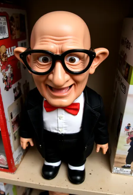 이 모델에서는 캐릭터 안의 캐릭터를 만들려고 노력했습니다. 2000년대 초 Six Flags 놀이공원에 등장했던 끔찍할 정도로 기묘하고 신속하게 춤추는 노인, Mr. Six와 Mr. 666를 모티브로 삼았습니다. 그러나 제가 기대했던 세부 사항들이 많이 빠져 있습니다. 예를 들어, 안경 프레임과 렌즈의 스타일과 두께, 그리고 얼굴의 고무 마스크 같은 질감이 그대로 구현되지 않았는데, 이는 Flux 모델이 얼굴을 정상화하고 아름답게 만드는 경향이 있기 때문인 것 같습니다(물론 이 모델이 자신의 공포 소재를 만들지 않을 때 말이죠). 이러한 특징들은 캡션에 언급되지 않았는데, 제가 '태그'한 내용보다 실제로 존재하는 것들에 집중하길 바랐기 때문입니다. 아마도 제 데이터셋 수집이 충분히 신중하지 못했을 가능성이 있습니다. 신체 형태도 불안정합니다. 이 캐릭터를 연기한 배우만큼 얇고 젊어 보이지 않습니다.