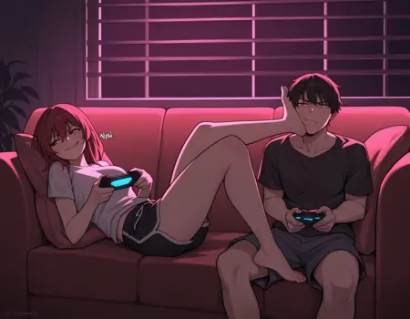 친구와 소파를 공유하는 이미지를 생성합니다,
