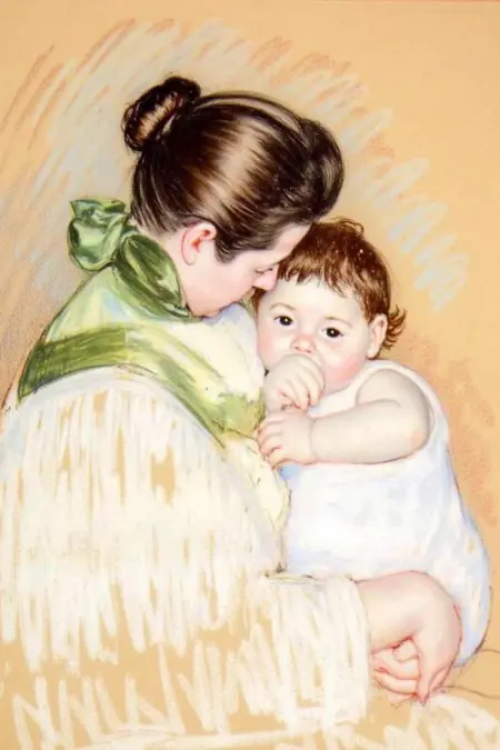 Motherhood in Pastel: Mary Cassatt Soft Pastel on Cardboard/Chalk Impressionist Portrait Style
