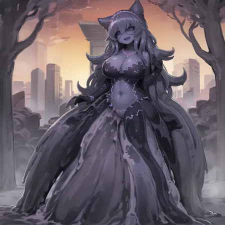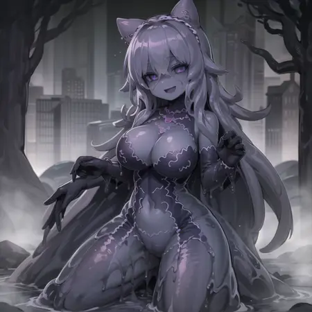 | 학습된 단어 | a female character dressed in dark outfit with black hair and long dark purple hair, 1girl, monster girl, solo, breasts, colored sclera, smile, looking at viewer, colored skin, open mouth, long hair, slime girl, black sclera, large breasts, outdoors, nature background, , geen eyes,queenSho복사됨! |