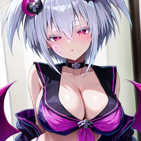 트리거 단어: chaos \(mfg\), 분홍 눈, 하얀 머리, 짧은 머리, 눈 사이의 머리카락, 얼굴 문신,